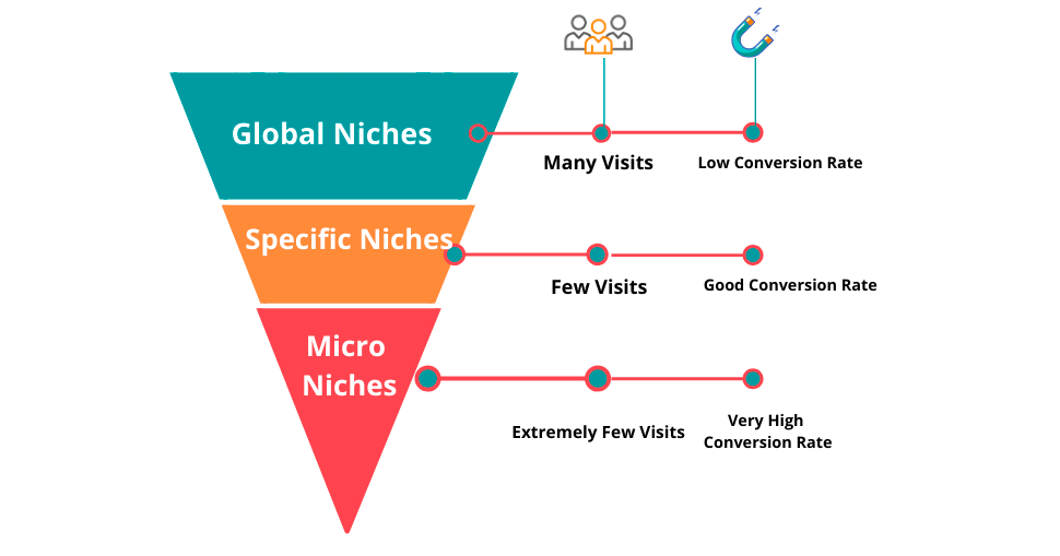 التخصص أو اختيار النيتش يعني التركيز على سوق أو مجال محدد داخل عالم كبير من المنتجات والخدمات. بدلًا من أن تسوق لجميع الأشياء مثل التكنولوجيا والصحة والجمال والربح من الإنترنت والرياضة والتغذية، تقوم بالتركيز على جانب واحد فقط.