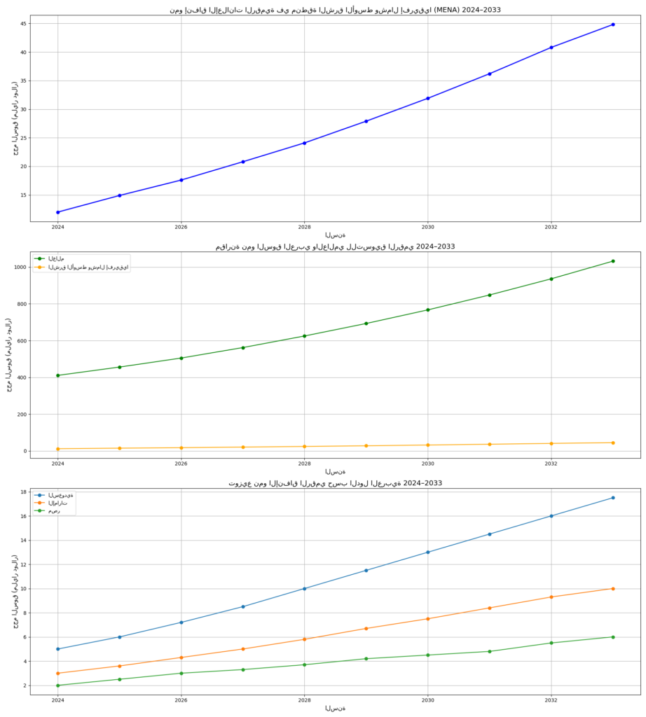 📊 الرسم البياني 1: نمو إنفاق الإعلانات الرقمية في MENA 2024–2033